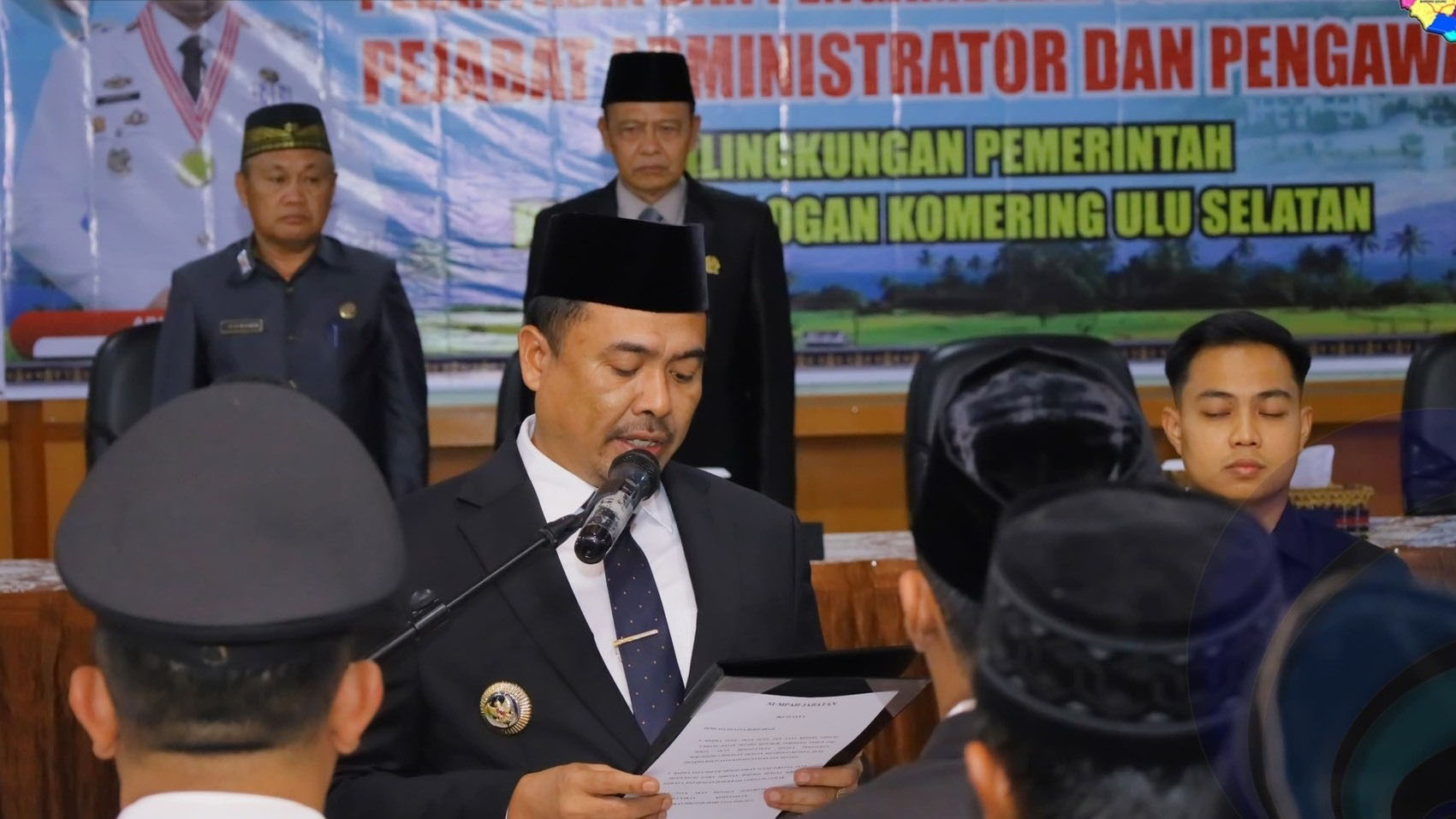 Pelantikandan pengambilan sumpah jabatan Pejabat Administrator dan Pengawas di Lingkungan Pemkab OKU Selatan, Selasa (11/11/2025) siang. Foto: Diskominfo OKU Selatan.
