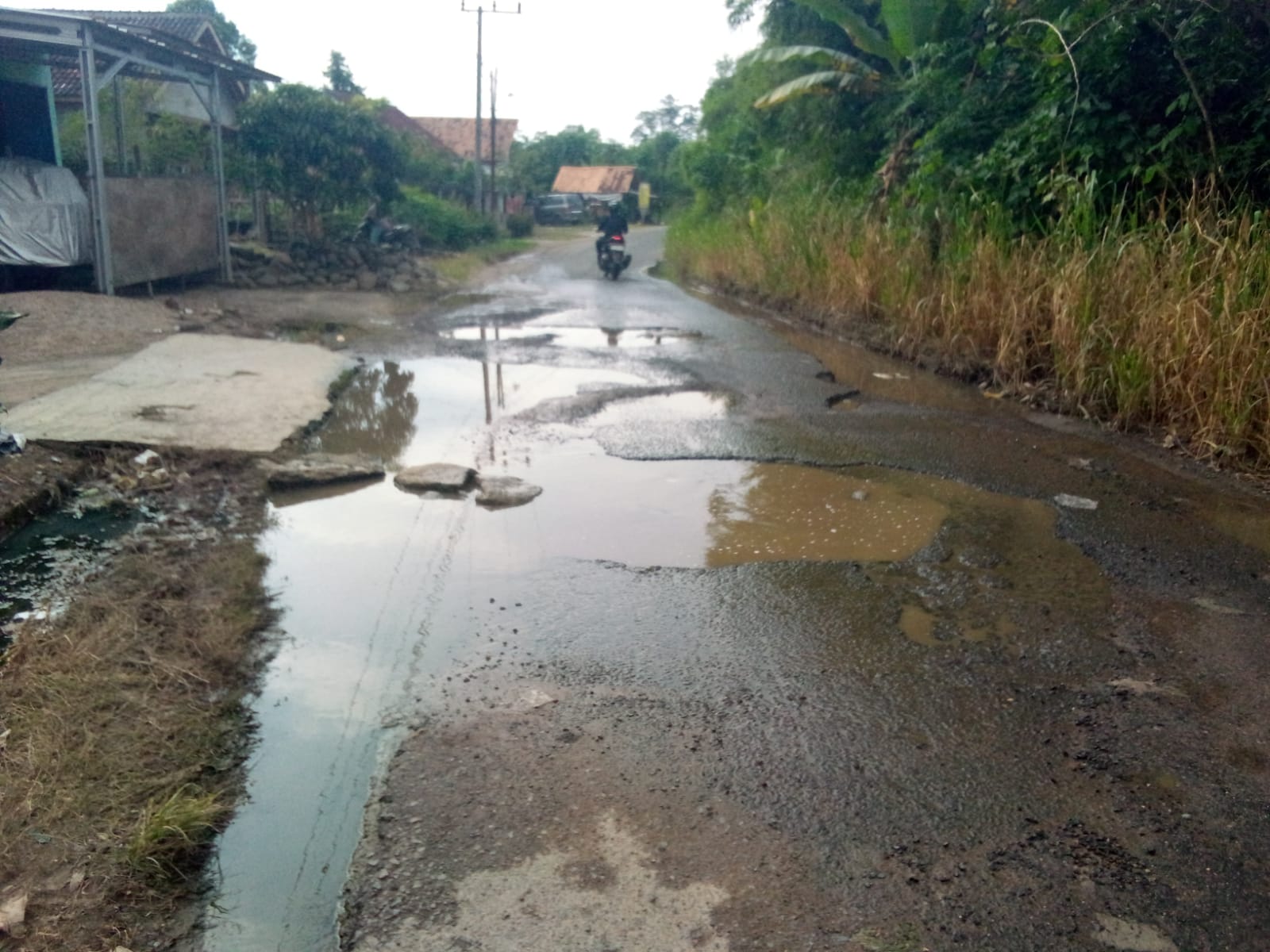 Menurut Rahmad, kondisi jalan poros di Dusun IV saat ini mengalami kerusakan cukup dalam dan membahayakan, terutama bagi pengendara sepeda motor. Situasi semakin berisiko saat malam hari karena minimnya penerangan di sekitar lokasi.