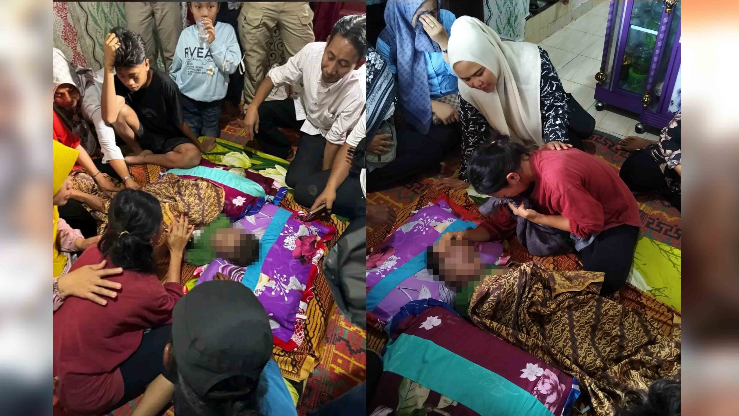 Suasana pilu menyelimuti rumah duka, di mana kerabat dan tetangga turut hadir memberikan dukungan moril kepada keluarga yang tengah berduka.